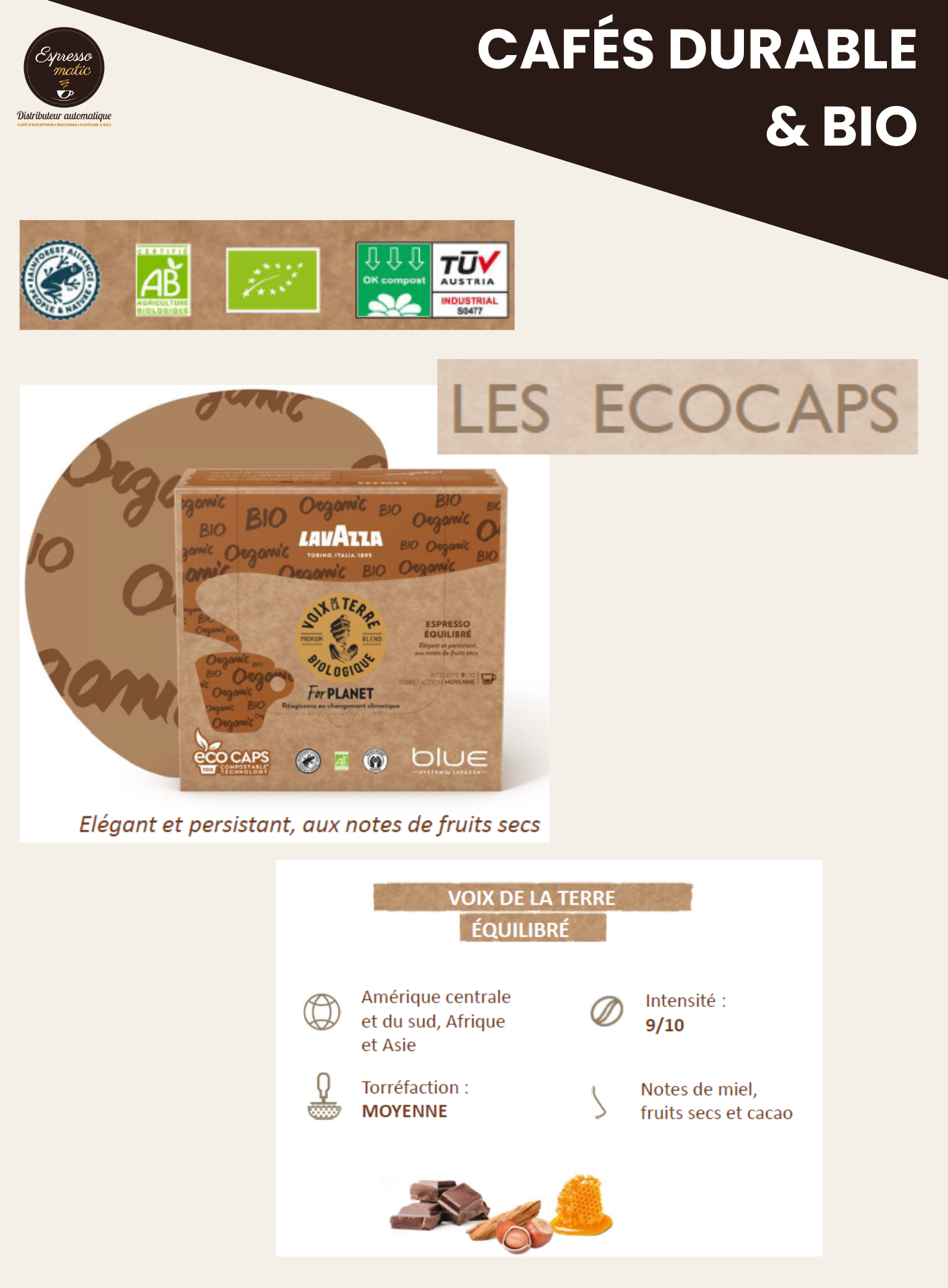 Nous vous proposons « VOIX DE LA TERRE » en capsule et les cafés labéllisés Max Havelaar en grains et lyophilisés.